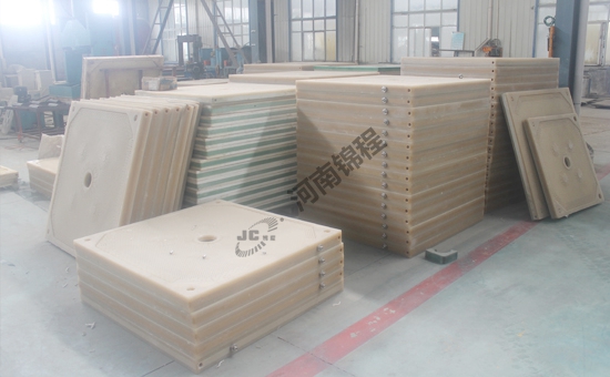 濾板全部為數(shù)控加工中心加工,其精度高出標準數(shù)倍,高于德國DIN標準的兩倍,濾板生產(chǎn)中由于外界溫度的不同而產(chǎn)生不同的收縮,至使濾板的外形尺寸誤差高可達3mm,景津?qū)λ袨V板外框四面全部經(jīng)過加工并做腔室表面熱融處理,消除加工中的毛刺,提高了表面光潔度,大大延長了濾布的使用壽命,此項成本約增加每塊八十元,與按我國行業(yè)標準生產(chǎn)的濾板相比:過濾速度提高20%;密度、強度、抗疲勞度、抗老化程度提高一倍,其使用壽命可達10年以上。濾板進料壓力為1.6MPa。耐高溫高壓、防腐密封好、過濾周期短、沖洗效果好、濾餅含濕率低。