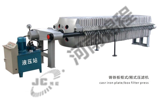 液壓部分:液壓部分是驅(qū)動(dòng)壓緊板壓緊或松開濾板的動(dòng)力裝置,配置了柱塞泵及各種控制閥。